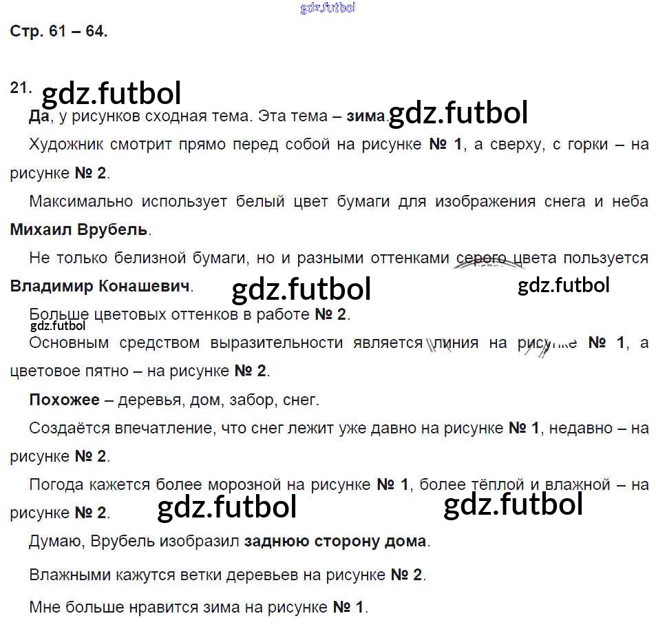 Готовые домашние задания по Литературе за 4 класс Чуракова Тетрадь для самостоятельной работы УМК 2019 ФГОС - Часть 2. Страницы 61