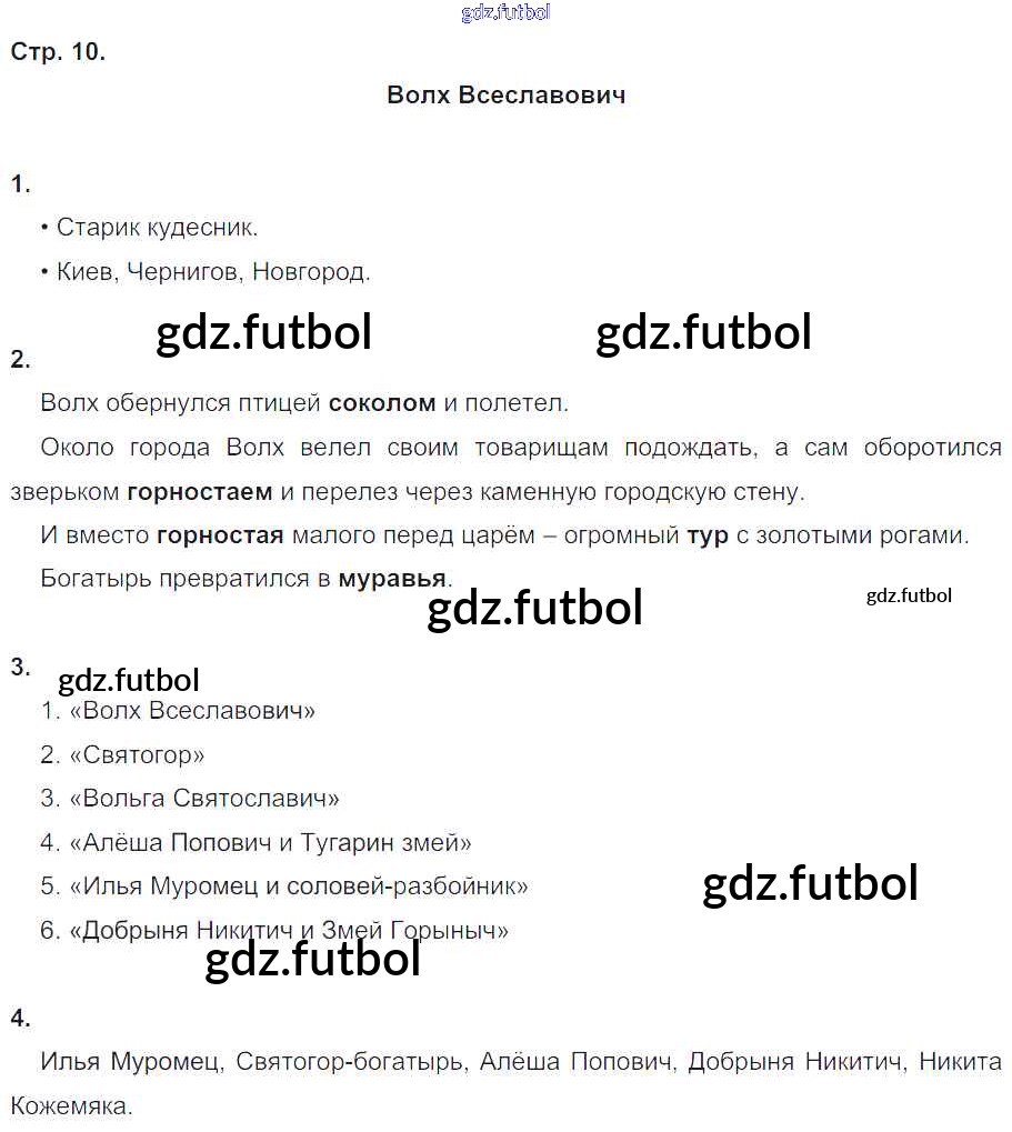 Готовые домашние задания по Литературе за 4 класс Ефросинина Рабочая тетрадь Начальная школа XXI века 2020 ФГОС - Часть 1. Страницы 10