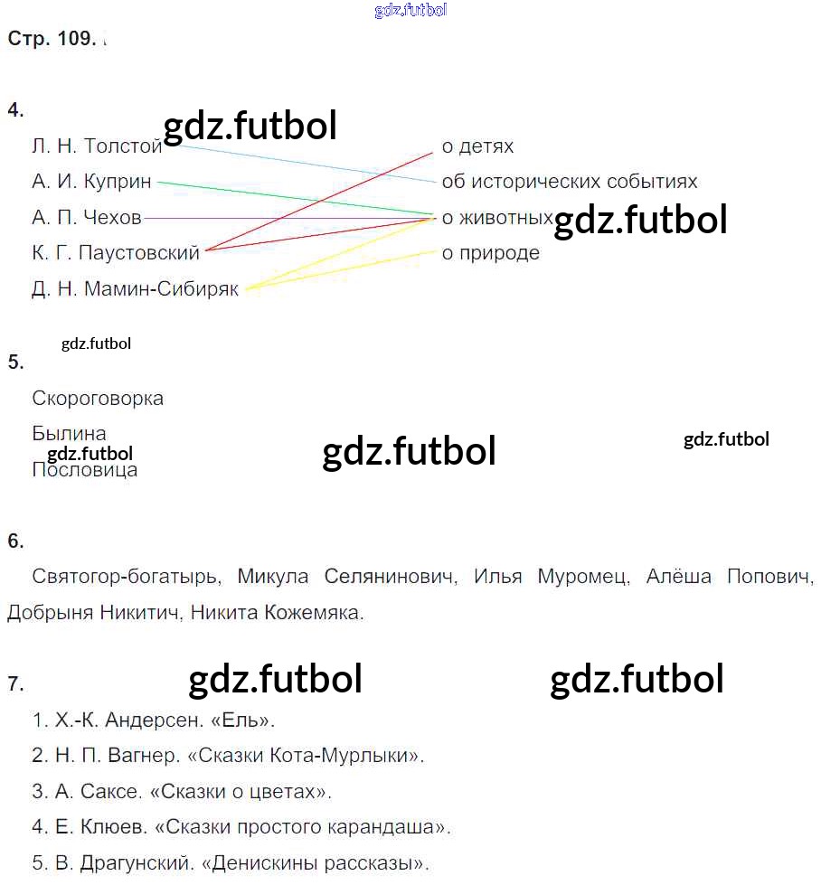 Готовые домашние задания по Литературе за 4 класс Ефросинина Рабочая тетрадь Начальная школа XXI века 2020 ФГОС - Часть 1. Страницы 109