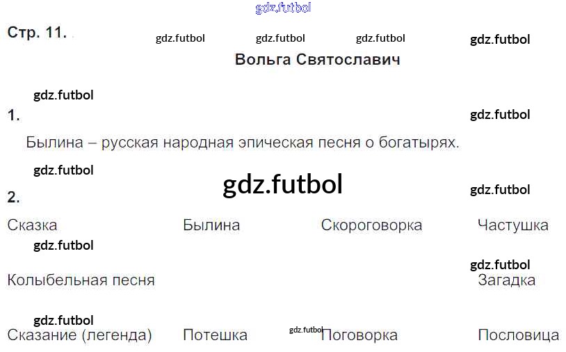 Готовые домашние задания по Литературе за 4 класс Ефросинина Рабочая тетрадь Начальная школа XXI века 2020 ФГОС - Часть 1. Страницы 11