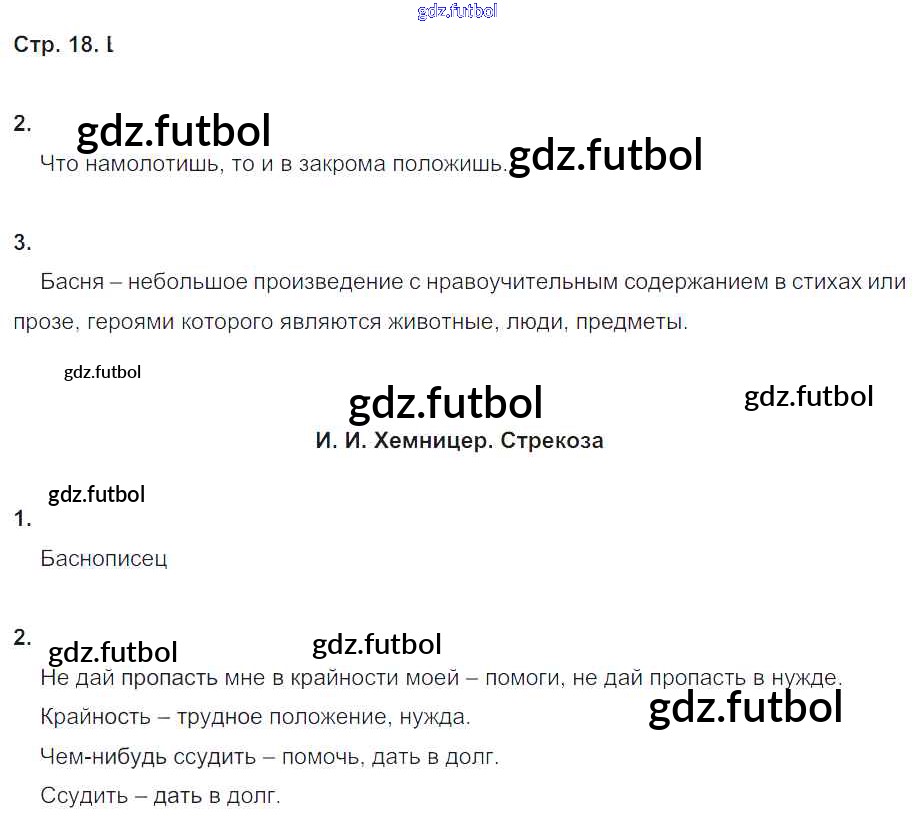 Готовые домашние задания по Литературе за 4 класс Ефросинина Рабочая тетрадь Начальная школа XXI века 2020 ФГОС - Часть 1. Страницы 18