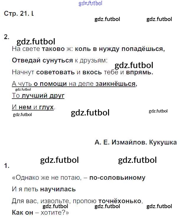 Готовые домашние задания по Литературе за 4 класс Ефросинина Рабочая тетрадь Начальная школа XXI века 2020 ФГОС - Часть 1. Страницы 21