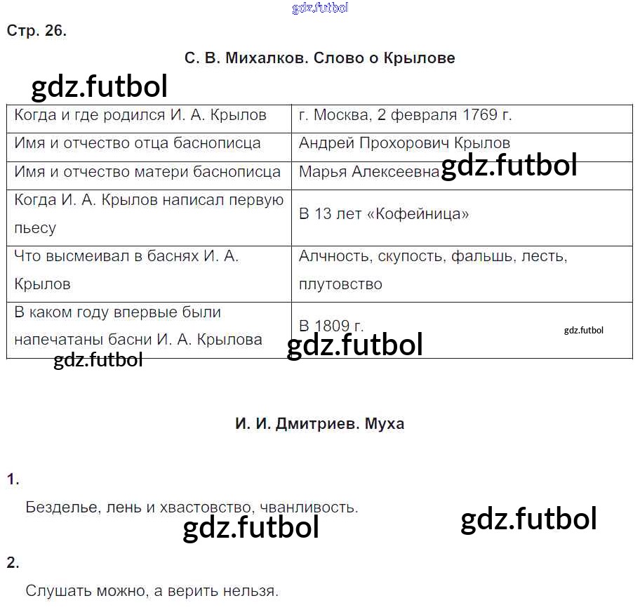 Готовые домашние задания по Литературе за 4 класс Ефросинина Рабочая тетрадь Начальная школа XXI века 2020 ФГОС - Часть 1. Страницы 26