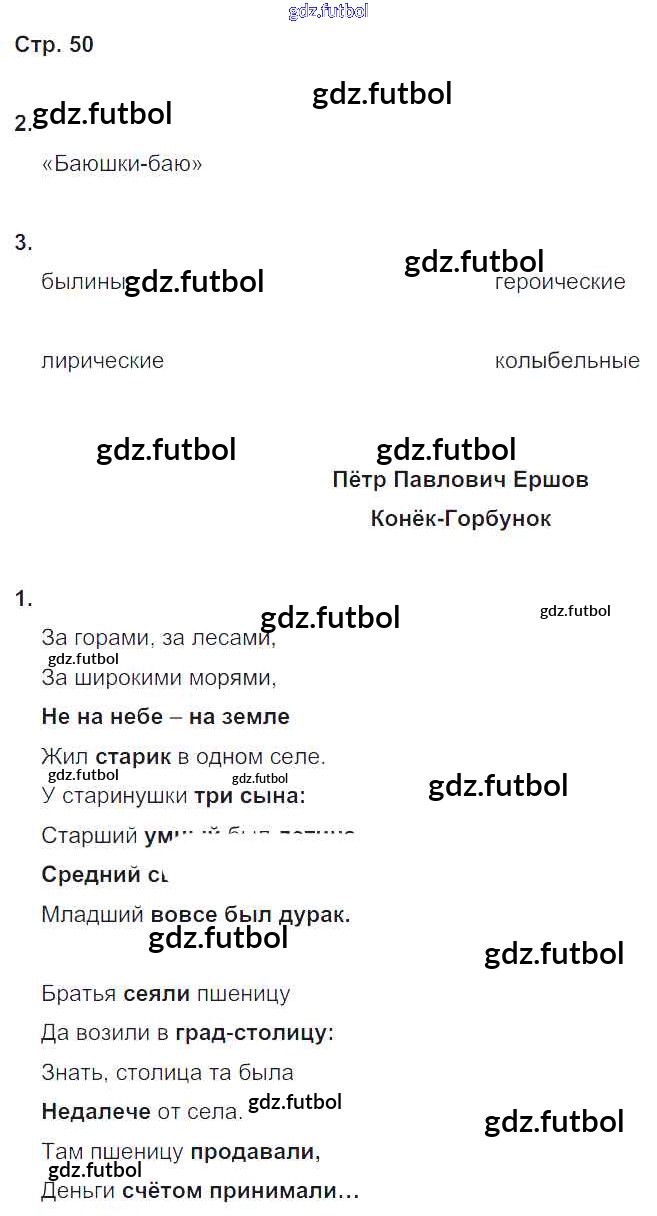 Готовые домашние задания по Литературе за 4 класс Ефросинина Рабочая тетрадь Начальная школа XXI века 2020 ФГОС - Часть 1. Страницы 50