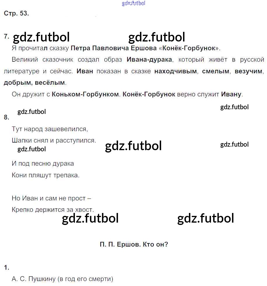Готовые домашние задания по Литературе за 4 класс Ефросинина Рабочая тетрадь Начальная школа XXI века 2020 ФГОС - Часть 1. Страницы 53