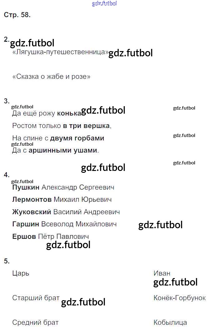 Готовые домашние задания по Литературе за 4 класс Ефросинина Рабочая тетрадь Начальная школа XXI века 2020 ФГОС - Часть 1. Страницы 58
