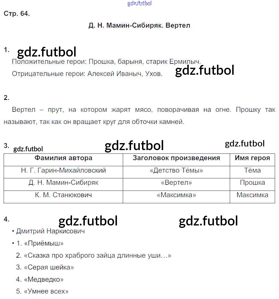 Готовые домашние задания по Литературе за 4 класс Ефросинина Рабочая тетрадь Начальная школа XXI века 2020 ФГОС - Часть 1. Страницы 64