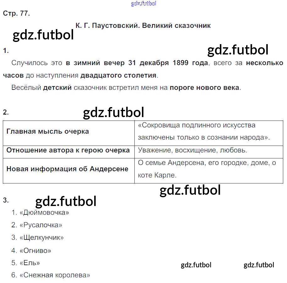 Готовые домашние задания по Литературе за 4 класс Ефросинина Рабочая тетрадь Начальная школа XXI века 2020 ФГОС - Часть 1. Страницы 77