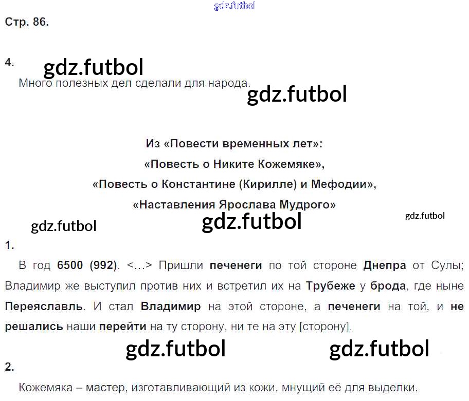 Готовые домашние задания по Литературе за 4 класс Ефросинина Рабочая тетрадь Начальная школа XXI века 2020 ФГОС - Часть 1. Страницы 86