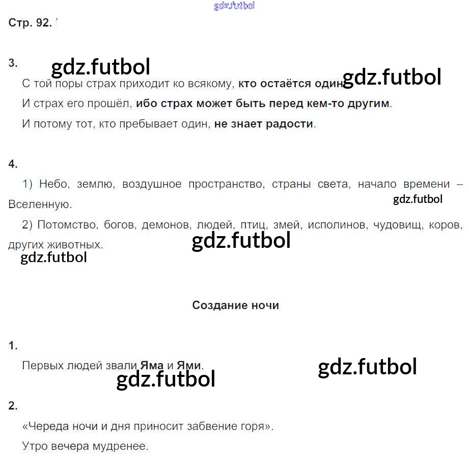 Готовые домашние задания по Литературе за 4 класс Ефросинина Рабочая тетрадь Начальная школа XXI века 2020 ФГОС - Часть 1. Страницы 92