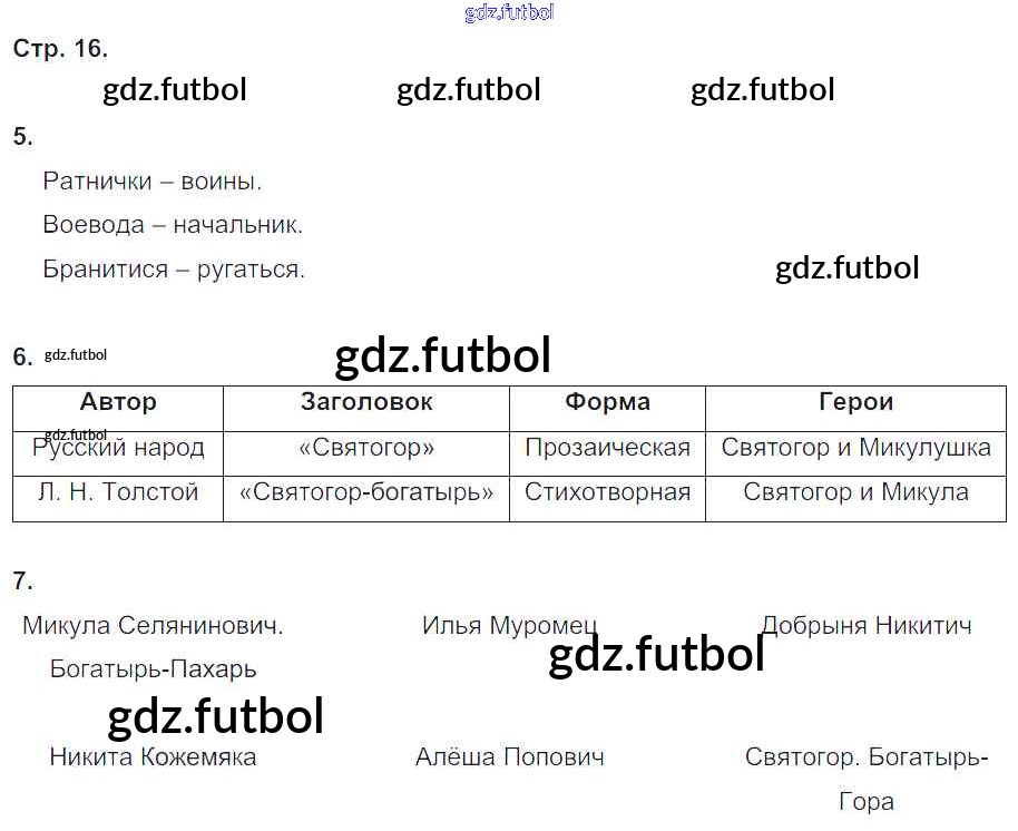 Готовые домашние задания по Литературе за 4 класс Ефросинина Рабочая тетрадь Начальная школа XXI века 2020 ФГОС - Часть 2. Страницы 16