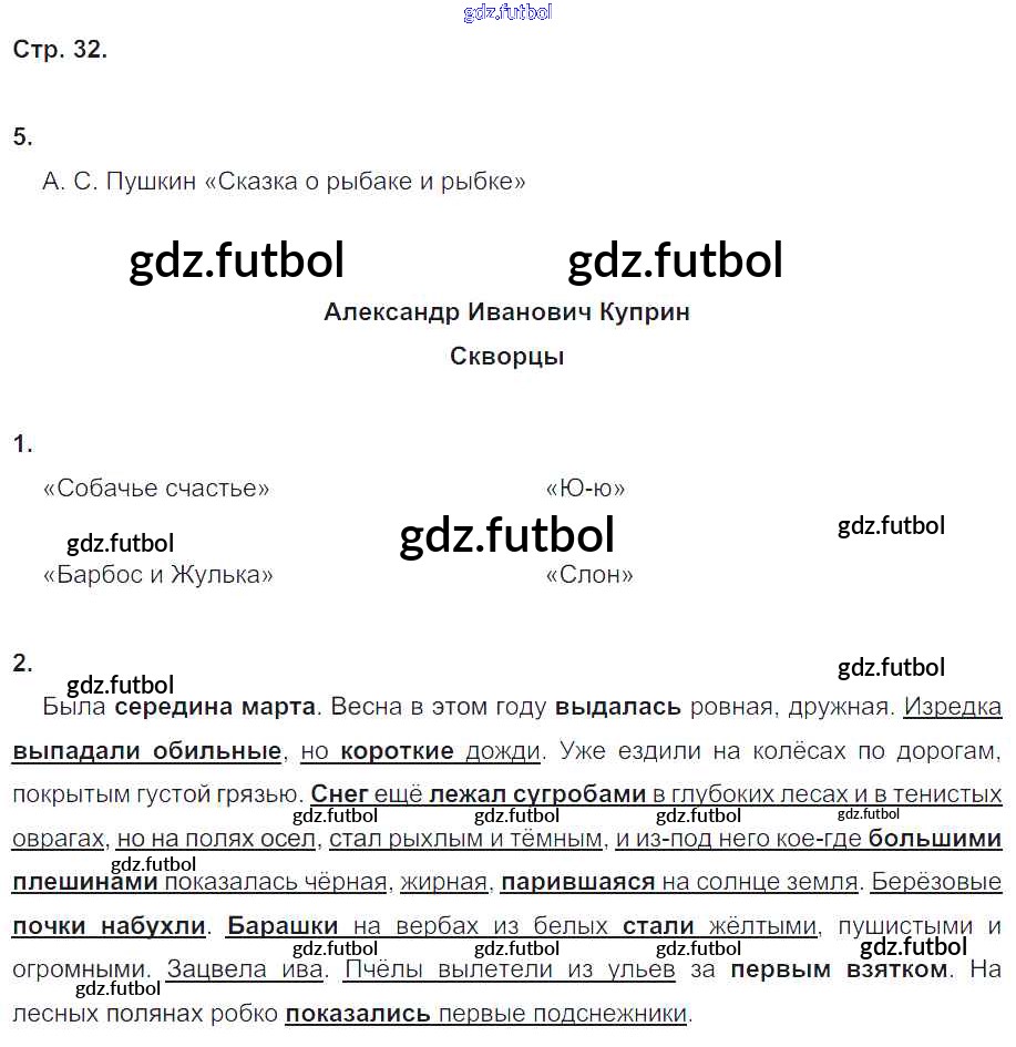 Готовые домашние задания по Литературе за 4 класс Ефросинина Рабочая тетрадь Начальная школа XXI века 2020 ФГОС - Часть 2. Страницы 32