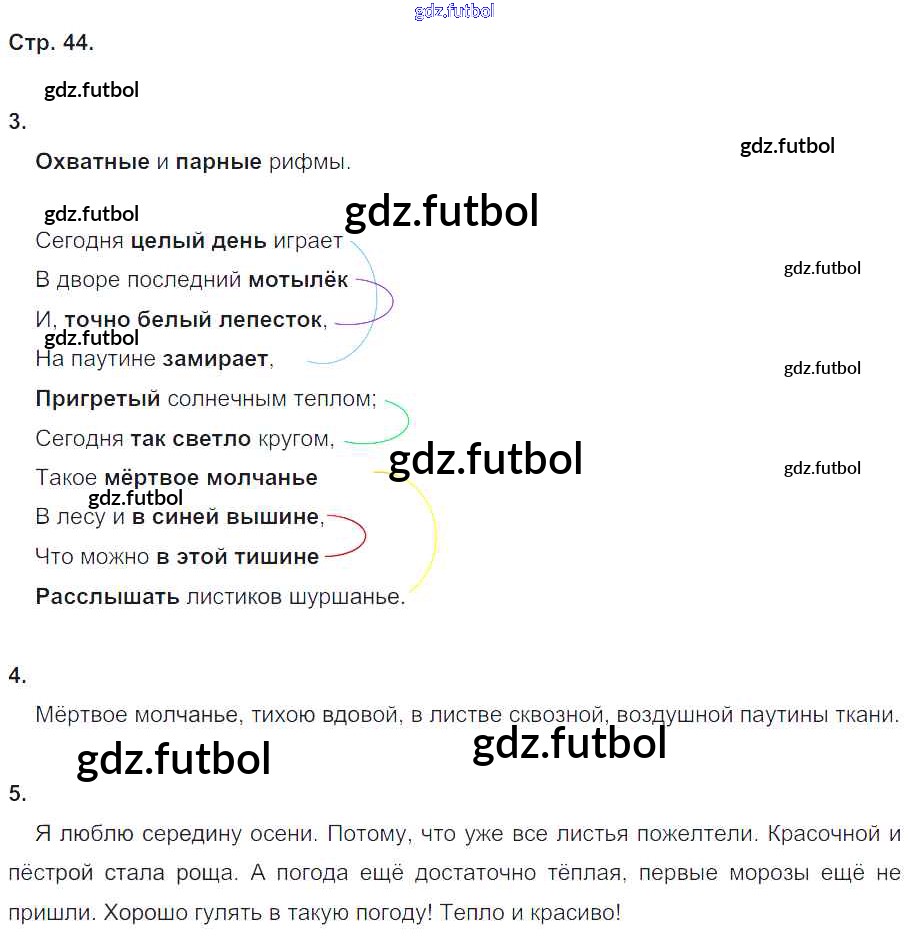 Готовые домашние задания по Литературе за 4 класс Ефросинина Рабочая тетрадь Начальная школа XXI века 2020 ФГОС - Часть 2. Страницы 44