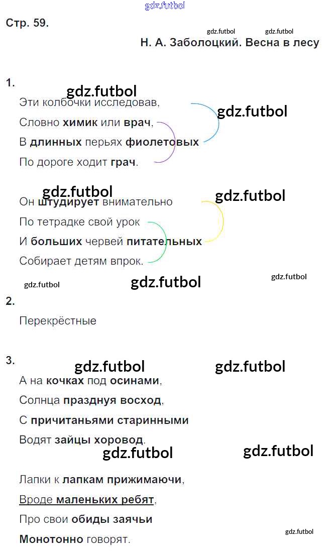 Готовые домашние задания по Литературе за 4 класс Ефросинина Рабочая тетрадь Начальная школа XXI века 2020 ФГОС - Часть 2. Страницы 59