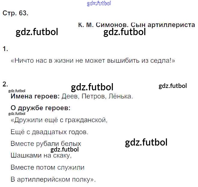 Готовые домашние задания по Литературе за 4 класс Ефросинина Рабочая тетрадь Начальная школа XXI века 2020 ФГОС - Часть 2. Страницы 63