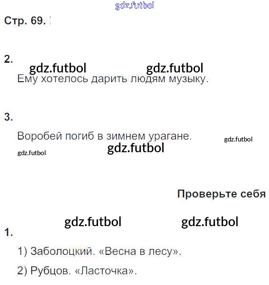 Готовые домашние задания по Литературе за 4 класс Ефросинина Рабочая тетрадь Начальная школа XXI века 2020 ФГОС - Часть 2. Страницы 69