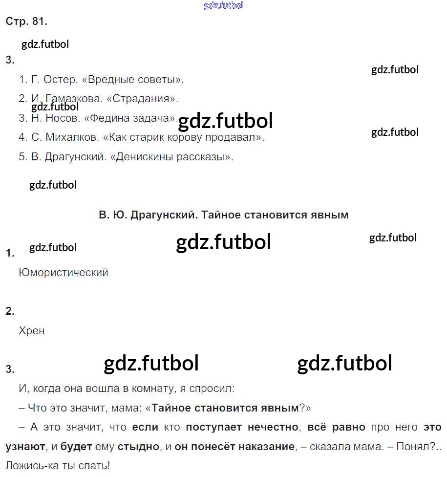 Готовые домашние задания по Литературе за 4 класс Ефросинина Рабочая тетрадь Начальная школа XXI века 2020 ФГОС - Часть 2. Страницы 81