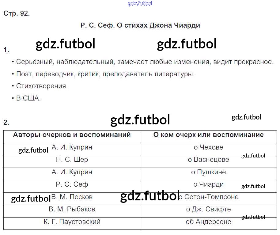 Готовые домашние задания по Литературе за 4 класс Ефросинина Рабочая тетрадь Начальная школа XXI века 2020 ФГОС - Часть 2. Страницы 92