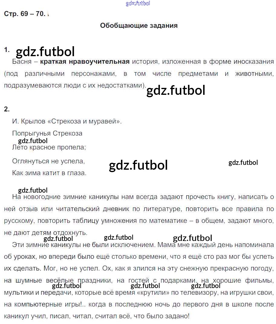 Готовые домашние задания по Литературе за 4 класс Кубасова Рабочая тетрадь Гармония 2019 ФГОС - Часть 1. Страницы 70