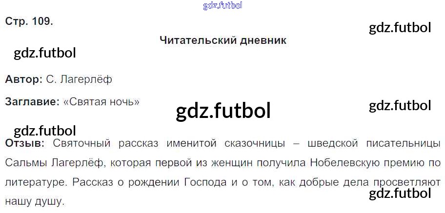 Готовые домашние задания по Литературе за 4 класс Кубасова Рабочая тетрадь Гармония 2019 ФГОС - Часть 2. Страницы 109