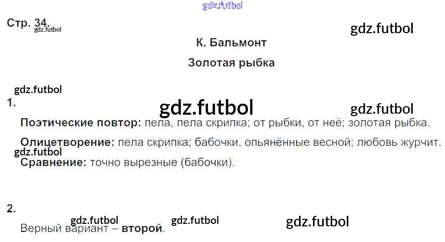 Готовые домашние задания по Литературе за 4 класс Кубасова Рабочая тетрадь Гармония 2019 ФГОС - Часть 2. Страницы 34
