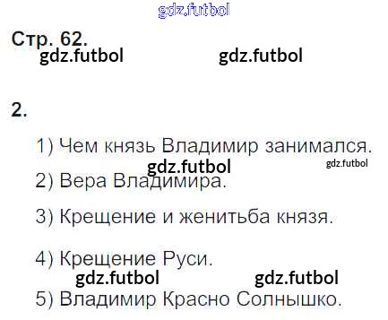 Готовые домашние задания по Литературе за 4 класс Кубасова Рабочая тетрадь Гармония 2019 ФГОС - Часть 2. Страницы 62