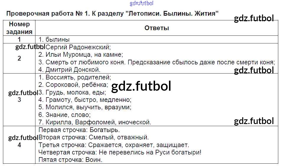 Готовые домашние задания по Литературе за 4 класс Кутявина Контрольно-измерительные материалы (КИМ) 2017 ФГОС - Проверочные работы ПР-1