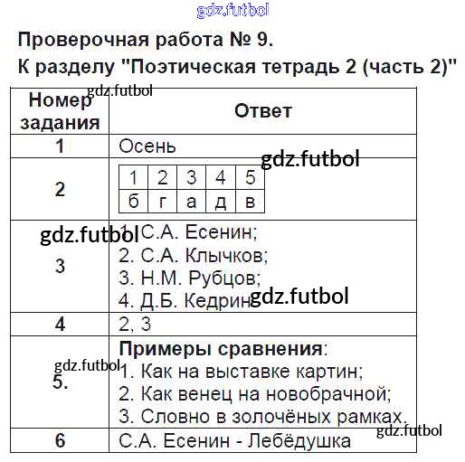 Готовые домашние задания по Литературе за 4 класс Кутявина Контрольно-измерительные материалы (КИМ) 2017 ФГОС - Проверочные работы ПР-9