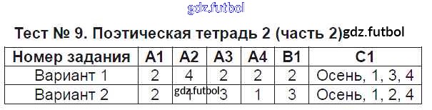 Тест №9. Поэтическая тетрадь 2 (часть 2)