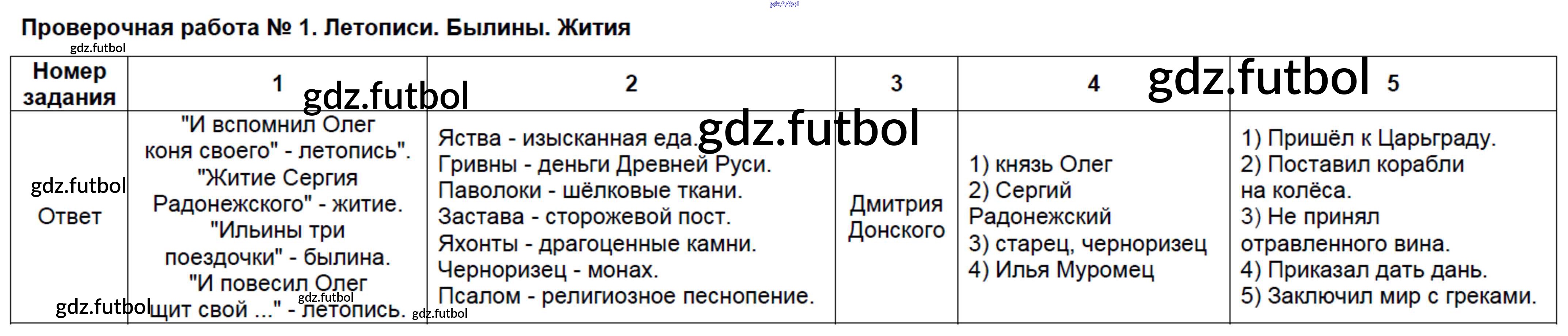 Готовые домашние задания по Литературе за 4 класс Шубина Контрольно-измерительные материалы (КИМ) 2014 ФГОС - Проверочные работы ПР-1. Летописи. Былины. Жития