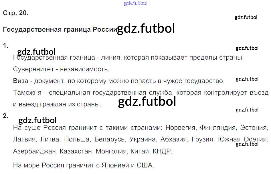 Готовые домашние задания по Окружающему миру за 4 класс Плешаков Рабочая тетрадь Перспектива 2015 ФГОС - Часть 1. Страницы 20