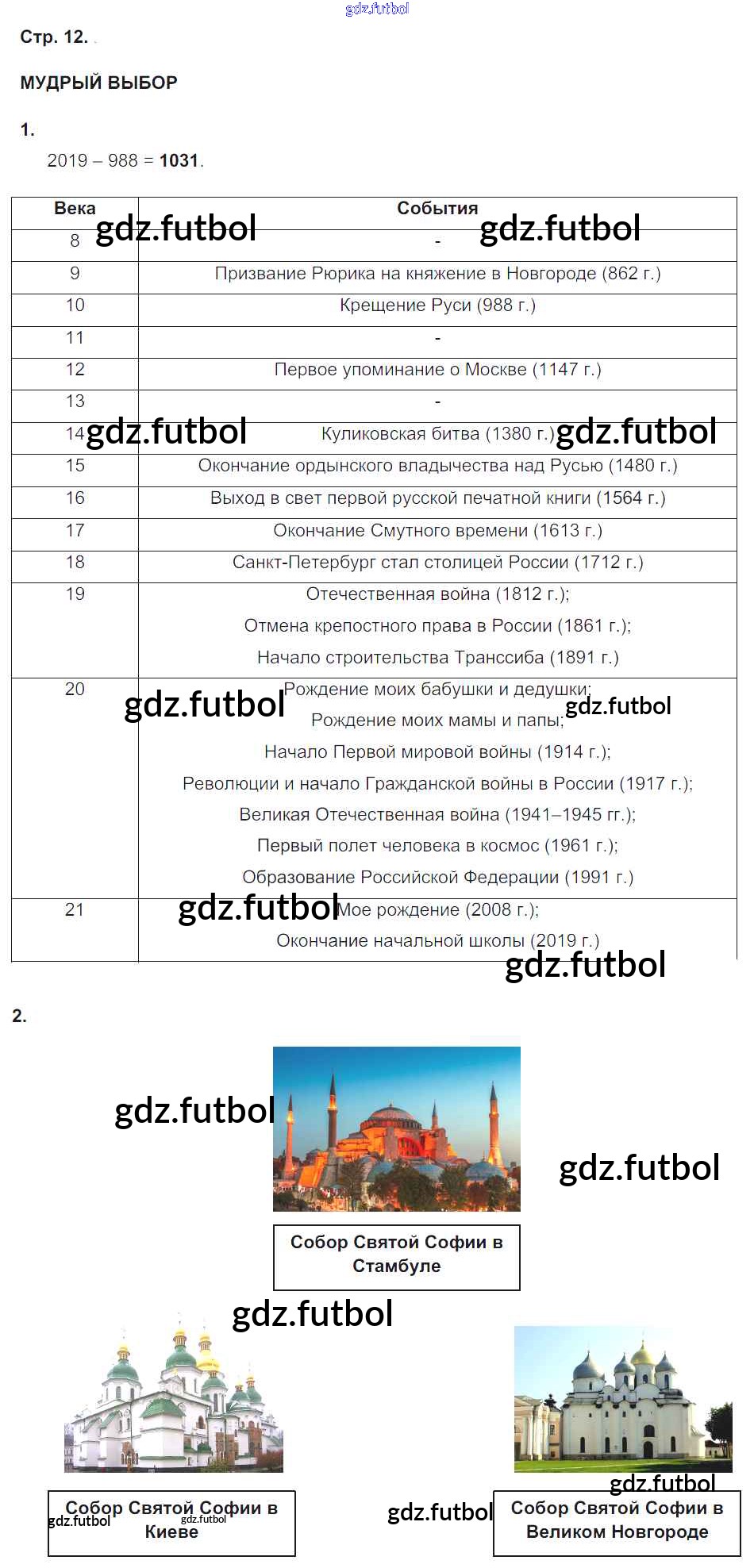 Готовые домашние задания по Окружающему миру за 4 класс Плешаков Рабочая тетрадь Перспектива 2015 ФГОС - Часть 2. Страницы 12