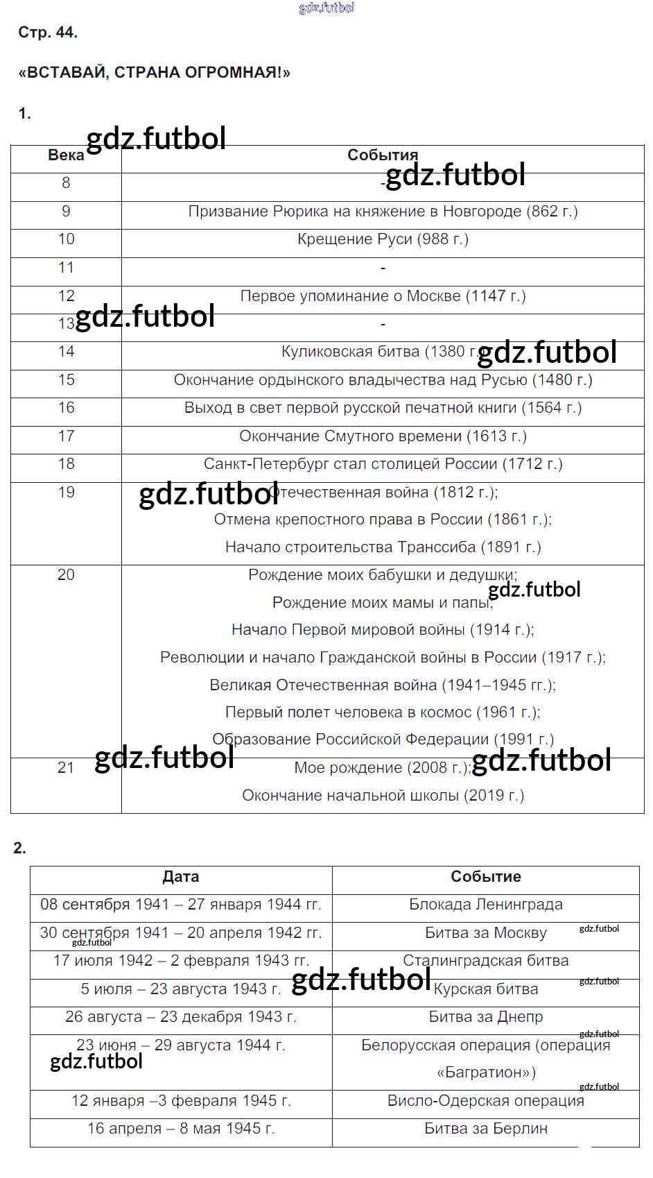 Готовые домашние задания по Окружающему миру за 4 класс Плешаков Рабочая тетрадь Перспектива 2015 ФГОС - Часть 2. Страницы 44