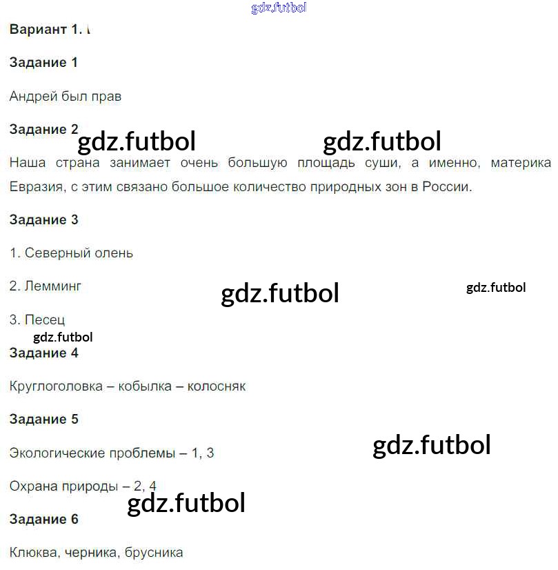 Готовые домашние задания по Окружающему миру за 4 класс Плешаков Проверочные работы Школа России 2018 ФГОС - ПР-2. Варианты 1