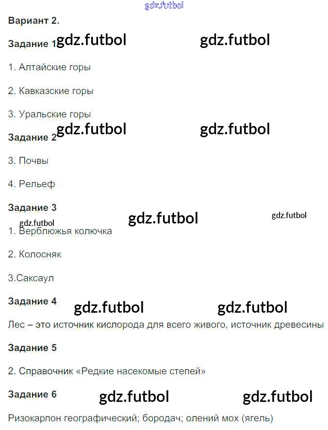 Готовые домашние задания по Окружающему миру за 4 класс Плешаков Проверочные работы Школа России 2018 ФГОС - ПР-2. Варианты 2