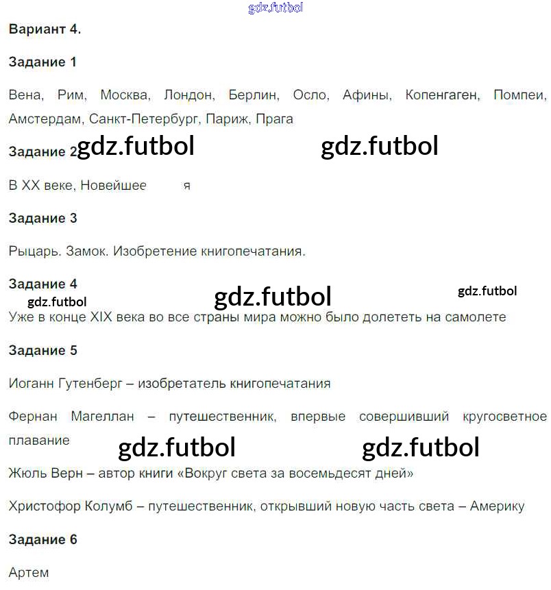 Готовые домашние задания по Окружающему миру за 4 класс Плешаков Проверочные работы Школа России 2018 ФГОС - ПР-4. Варианты 4