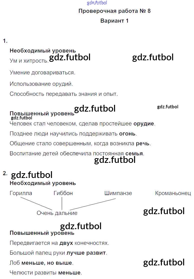 Готовые домашние задания по Окружающему миру за 4 класс Вахрушев Проверочные и контрольные работы Школа 2100 2017 ФГОС - ПР-8. Варианты 1