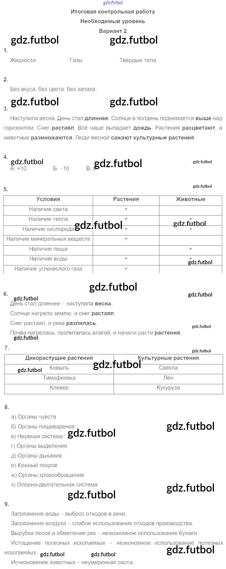 Готовые домашние задания по Окружающему миру за 4 класс Вахрушев Проверочные и контрольные работы Школа 2100 2017 ФГОС - Необходимый уровень 2