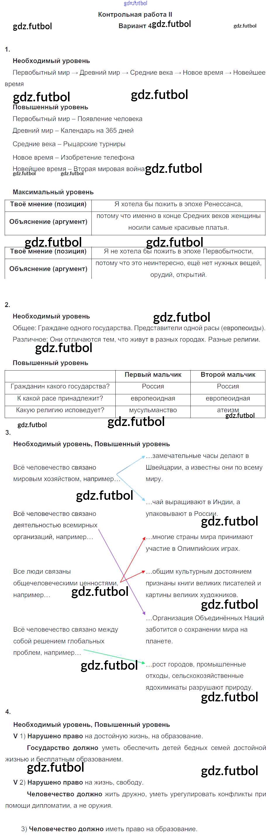 Готовые домашние задания по Окружающему миру за 4 класс Вахрушев Проверочные и контрольные работы Школа 2100 2017 ФГОС - КР-2. Варианты 4