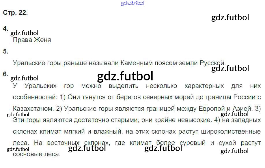 Готовые домашние задания по Окружающему миру за 4 класс Виноградова Тетрадь для проверочных работ Начальная школа XXI века 2018 ФГОС - Часть 2. Страницы 22