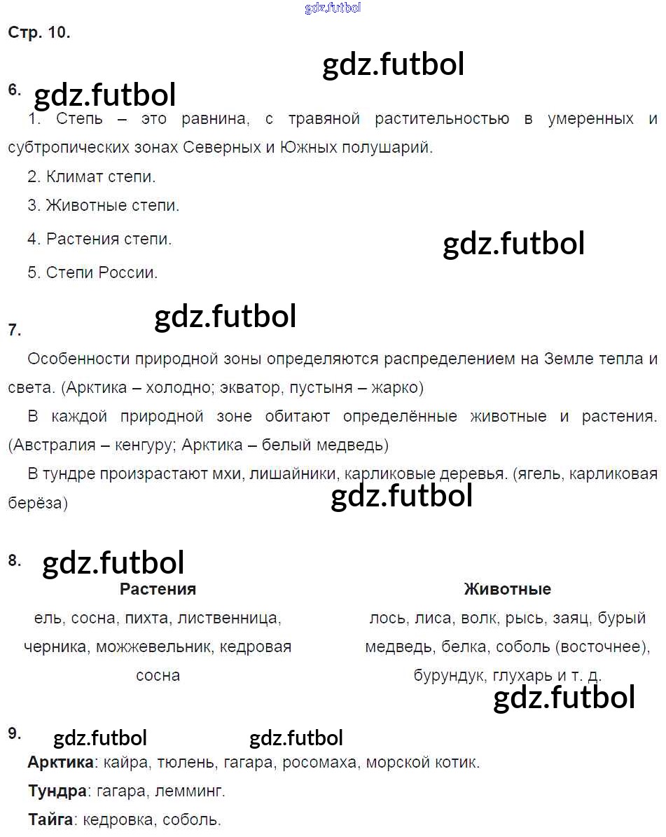 Готовые домашние задания по Окружающему миру за 4 класс Виноградова Рабочая тетрадь Алгоритм успеха 2016 ФГОС - Часть 2. Страницы 10