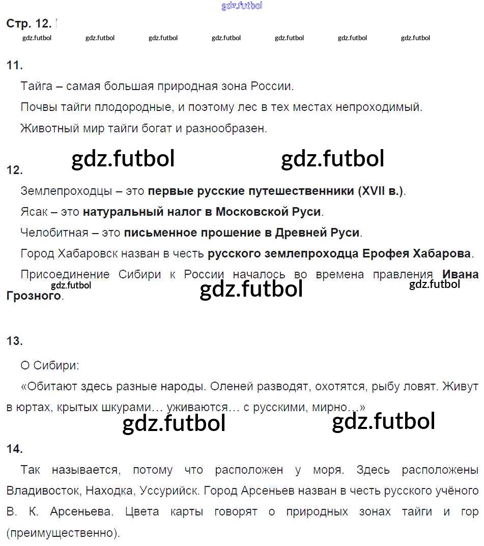Готовые домашние задания по Окружающему миру за 4 класс Виноградова Рабочая тетрадь Алгоритм успеха 2016 ФГОС - Часть 2. Страницы 12