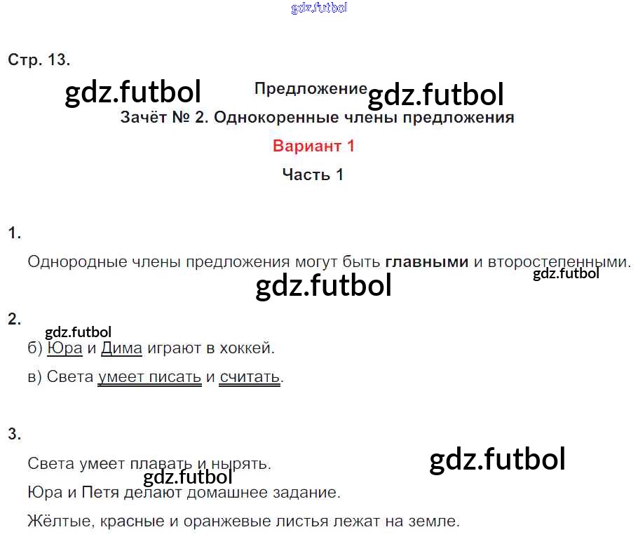 Готовые домашние задания по Русскому языку за 4 класс Алимпиева Зачётные работы УМК 2016 ФГОС - Часть 1. Страницы 13