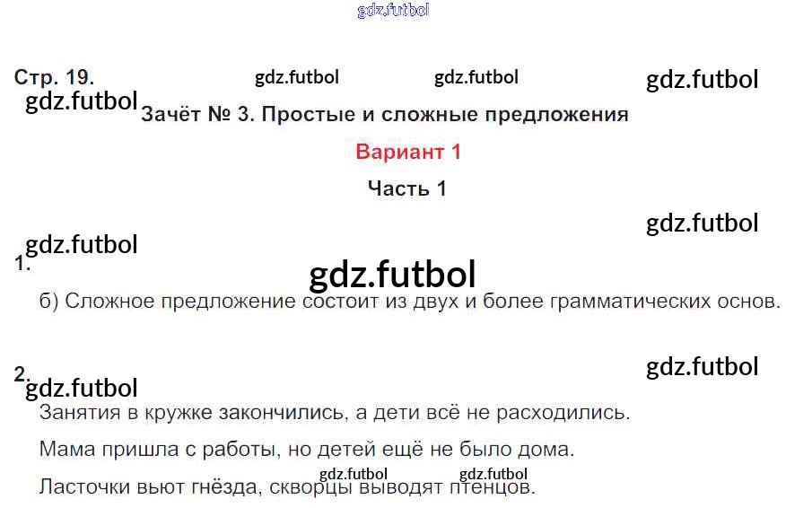 Готовые домашние задания по Русскому языку за 4 класс Алимпиева Зачётные работы УМК 2016 ФГОС - Часть 1. Страницы 19