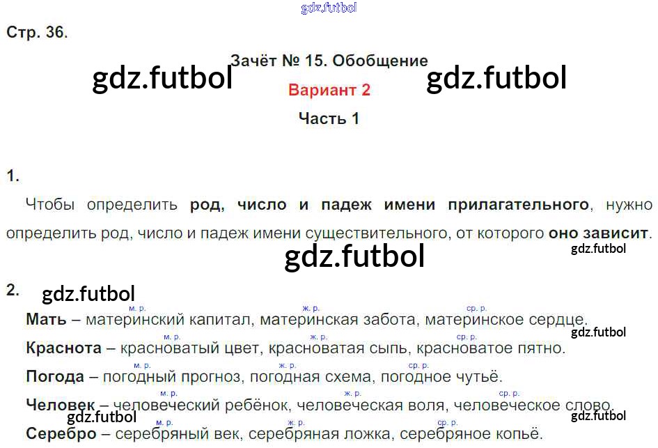 Готовые домашние задания по Русскому языку за 4 класс Алимпиева Зачётные работы УМК 2016 ФГОС - Часть 1. Страницы 36