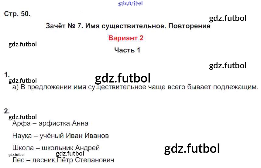 Готовые домашние задания по Русскому языку за 4 класс Алимпиева Зачётные работы УМК 2016 ФГОС - Часть 1. Страницы 50