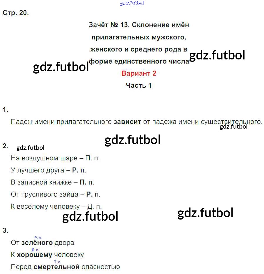 Готовые домашние задания по Русскому языку за 4 класс Алимпиева Зачётные работы УМК 2016 ФГОС - Часть 2. Страницы 20