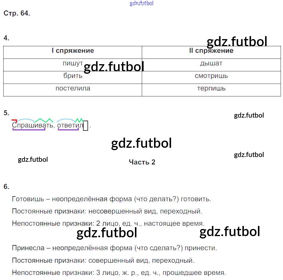 Готовые домашние задания по Русскому языку за 4 класс Алимпиева Зачётные работы УМК 2016 ФГОС - Часть 2. Страницы 64