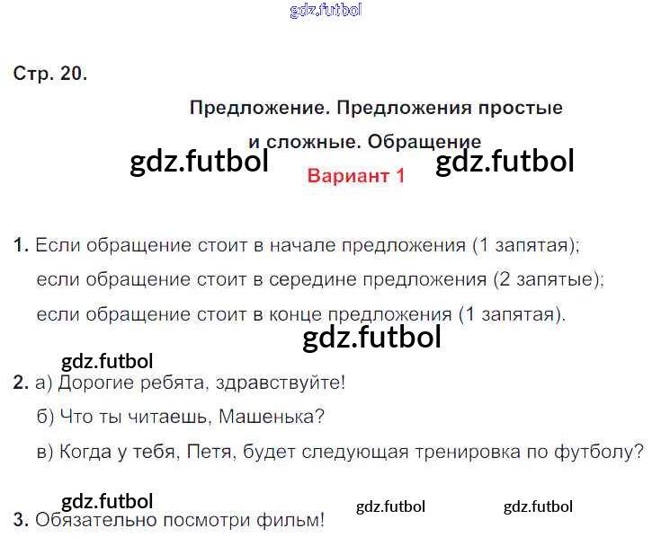 Готовые домашние задания по Русскому языку за 4 класс Крылова Контрольные работы УМК 2015 ФГОС - Часть 1. Страницы 20