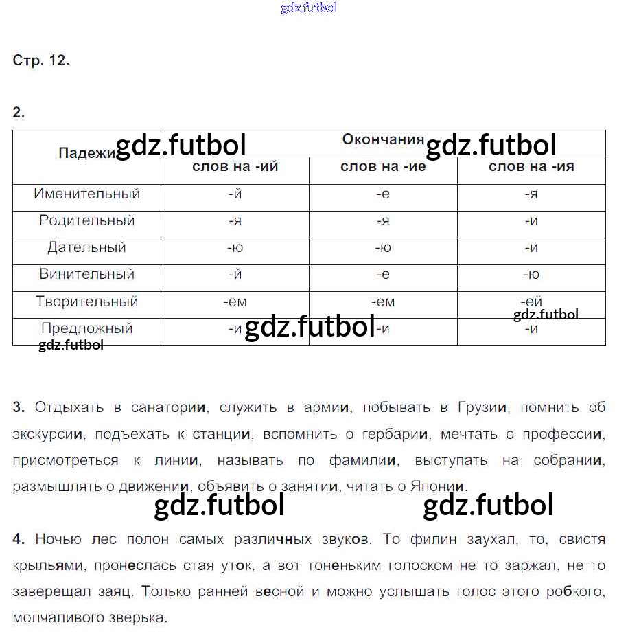 Готовые домашние задания по Русскому языку за 4 класс Кузнецова Рабочая тетрадь Начальная школа XXI века 2018 ФГОС - Часть 1. Страница 12